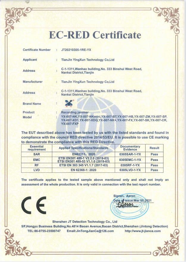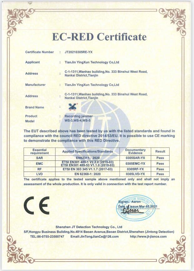 公司錄音屏蔽器產(chǎn)品獲得CE認(rèn)證