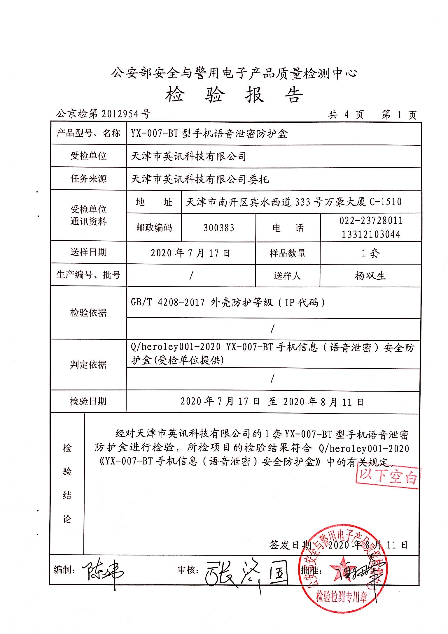 Yingxunyx-007-bt mobile phone information security protection box received the Ministry of public security detection report!!
