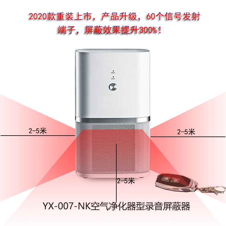 此款錄音屏蔽器是我司研發(fā)人員根據(jù)防錄音屏蔽的特點和要求研發(fā)的一款產(chǎn)品,產(chǎn)品的外形是一款空氣凈化器,具有空氣凈化和錄音屏蔽雙重功能,產(chǎn)品外形美觀,簡潔大方。用空氣的凈化器的隱蔽性達到屏蔽非法錄音的效果。