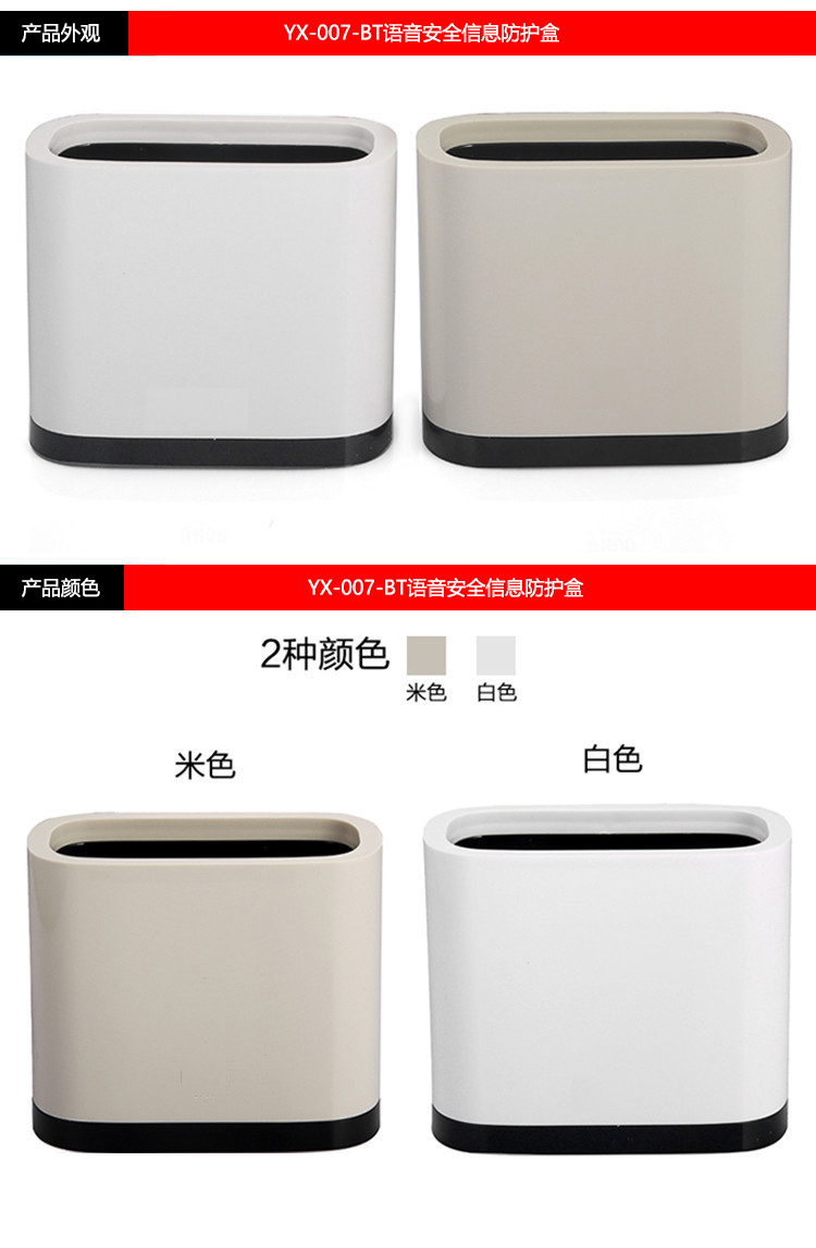 此防護盒是天津市英訊科技有限公司在通過大量的市場調研和用戶的走訪的基礎上研發生產的一款高科技產品。它可以有效防止手機的語音信息被暗中竊聽并錄走,眾所周知,如果手機被植入間諜軟件,手機在開關機狀態都可以被悄無聲息開啟麥克風,手機周圍的語音信息就會被非法接收,這些信息還會發送到植入者的郵箱,造成語音泄密;亦或在談話過程中,一方將手機處于通話狀態中,遠端即可聽到談話內容,造成談話泄密。這兩種情況都是由于手機沒有被放置在正確的地方造成的。手機信息安全防護盒正是防止手機被竊聽泄密需要放置的地方。防護盒內置語音信息屏蔽模組,在盒內形成屏蔽場。手機在不用時,將其放在盒內即可有效杜絕語音泄密,同時也不影響手機的正常接打。