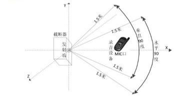 如圖一 所示,屏蔽器發射端在機器正前面。為達到最佳的截斷效果,請根據實際情況調整位置和角度。具體操作可參見圖三。如圖三所示,對一般錄音設備,本產品的截斷距離在 1.5米左右,截斷角度在 90 度左右。對不同的錄音設備,其距離和角度可能會有差異。部分機型其距離大于 2 米、角度大于120 度,但少數機型其距離可能小于 1 米、角度小于 60 度。
