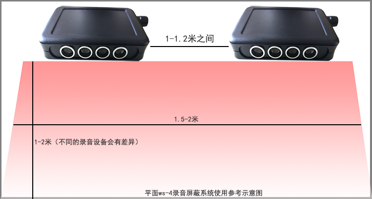 1-2米(視不同錄音設備屏蔽距離有差異) |