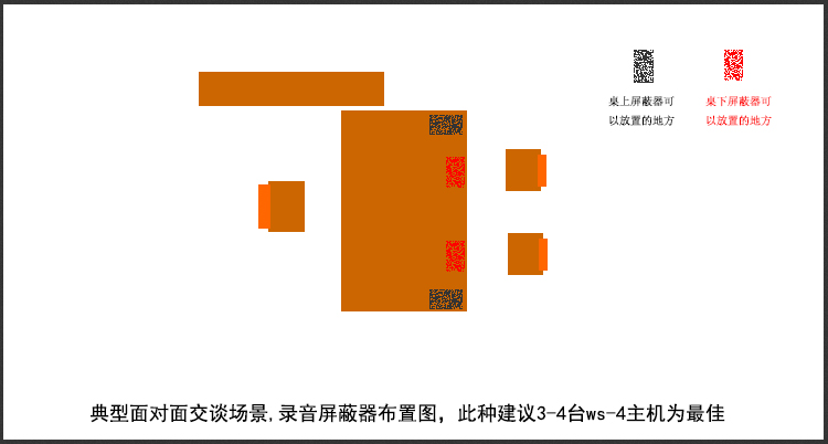 為保證屏蔽效果,本系統基礎配置為兩套屏蔽主機,不能小于兩臺,后面可以單臺增加。每臺主機軟件均采用了基于標識的靜音加密算法,保證了錄音文件無法進行破譯和分解,此算法廣泛應用于手機數據加密,非常安全。靜音采用自適應靜音技術,開機后訪客沒有任何不適感,保證了隱蔽性和安全性。