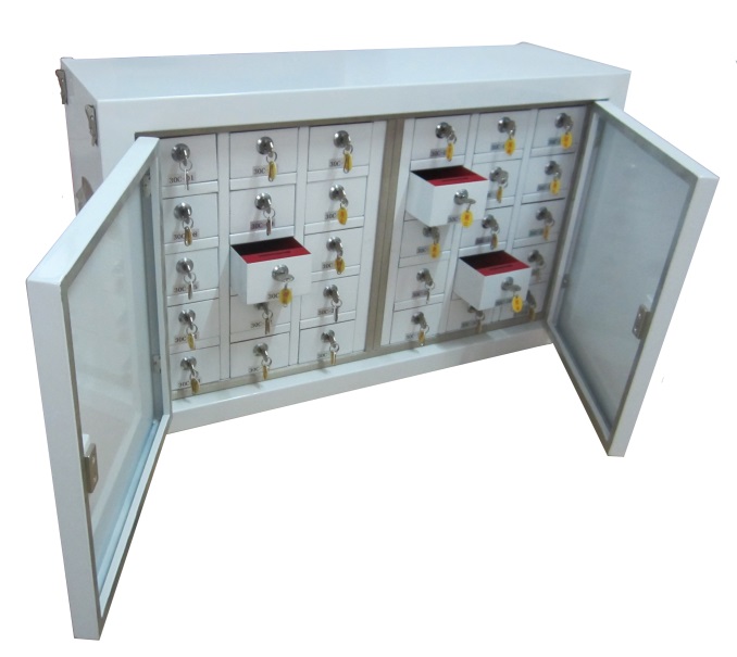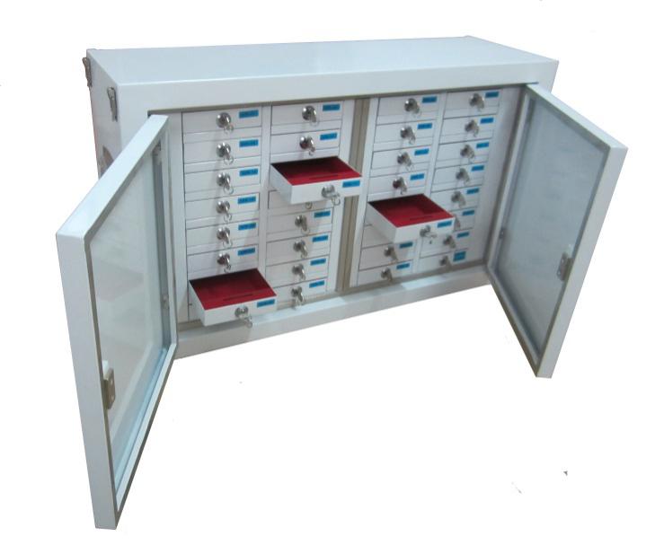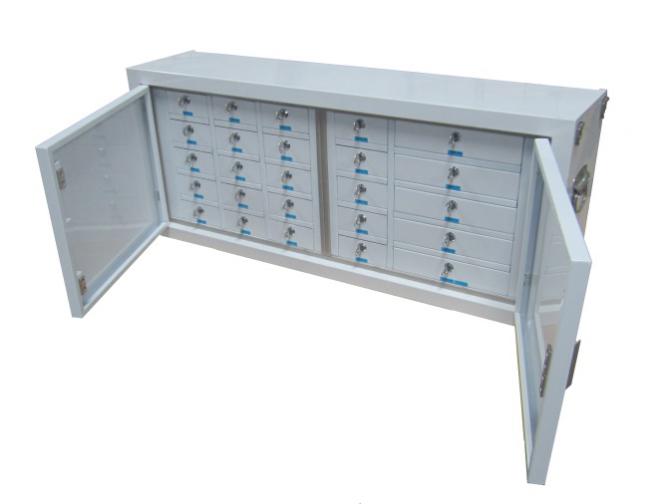 該產品采用嚴密的結構設計,內部采用電鍍處理,表面靜電噴塑,具高耐磨性及防腐性,防輻射性能強,屏蔽效能好,可有效抑制移動電話信號的泄漏,并可同時存放多部移動電話,每個抽屜采用安全式信箱鎖,獨立式管理。適應于黨政機關,軍隊,會議室,考試場所等涉密場所的移動電話集中管理,不受用電環境的影響。